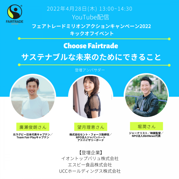 アンバサダーの皆さまとは、フェアトレードとの関りや想い、キャンペーンのサブタイトルである「サステナブルな未来のためにできること」をテーマに、トークセッションを行います。