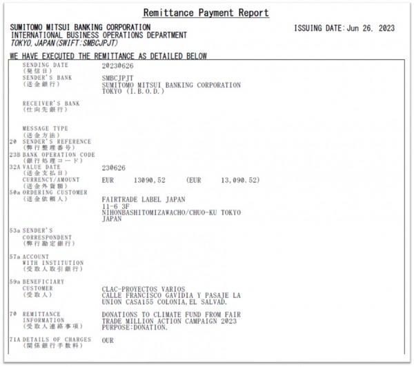 キャンペーンの結果を受けて、1アクション=1円にあたる207万1,837円を気候変動基金管理団体である、中南米生産者ネットワークCLAC(フェアトレード・インターナショナルのメンバー組織)に送金しましたので、ご報告いたします。