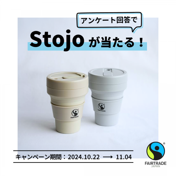 フェアトレード・ジャパンのアンケートにお答えいただいた方の中から、抽選で3名様にオリジナルStojo(折りたたみ式エコカップ)をプレゼント!