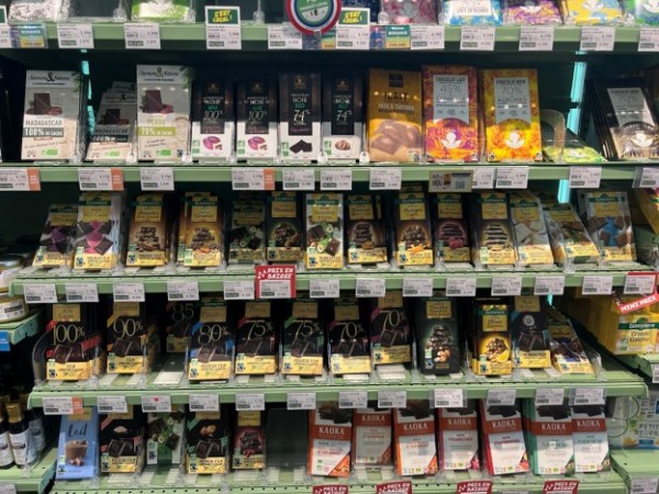 ▲ビオセボンのチョコレート売り場にはフェアトレード認証商品が沢山ありました!