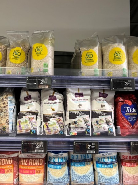 フランスに来てまだ3週間ほどですが、スーパーでのフェアトレード認証商品の取り扱いの多さに驚いています。コーヒーやお茶、チョコレートはもちろんのこと、ジュースや缶詰、お米、砂糖など日本ではあまり見かけない製品でもフェアトレード認証のものが見られます。そして何よりこれらが小さなスーパーや低価格帯のお店にもあり、フェアトレード製品が日常に浸透しているのを日々実感しています。