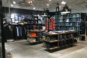 Nudie Jeansは、弊社の代表が海外で出会ったブランドでした。卸からスタートし、このブランドに魅力を感じ日本で直営店をオープンすることになったのです。 日本での初の出店は原宿のラフォーレだったのですが、エシカルな雰囲気を出さないロックなスタイリングにデニムのリペアやリサイクルなどの資源を無駄にしない斬新な取り組みは、ファッションの地での支持が得られるという期待があったからです。 そして当時、内装イメージをブラックを基調とするコンセプトが決まったタイミングでもありました。北欧の古びた工場跡をベースに、ブラックでリノベーションすることで、スタイリッシュに表現する事が出来ました。 もちろん、今も同じ考えではありますが、常に進化し続けていると感じております。